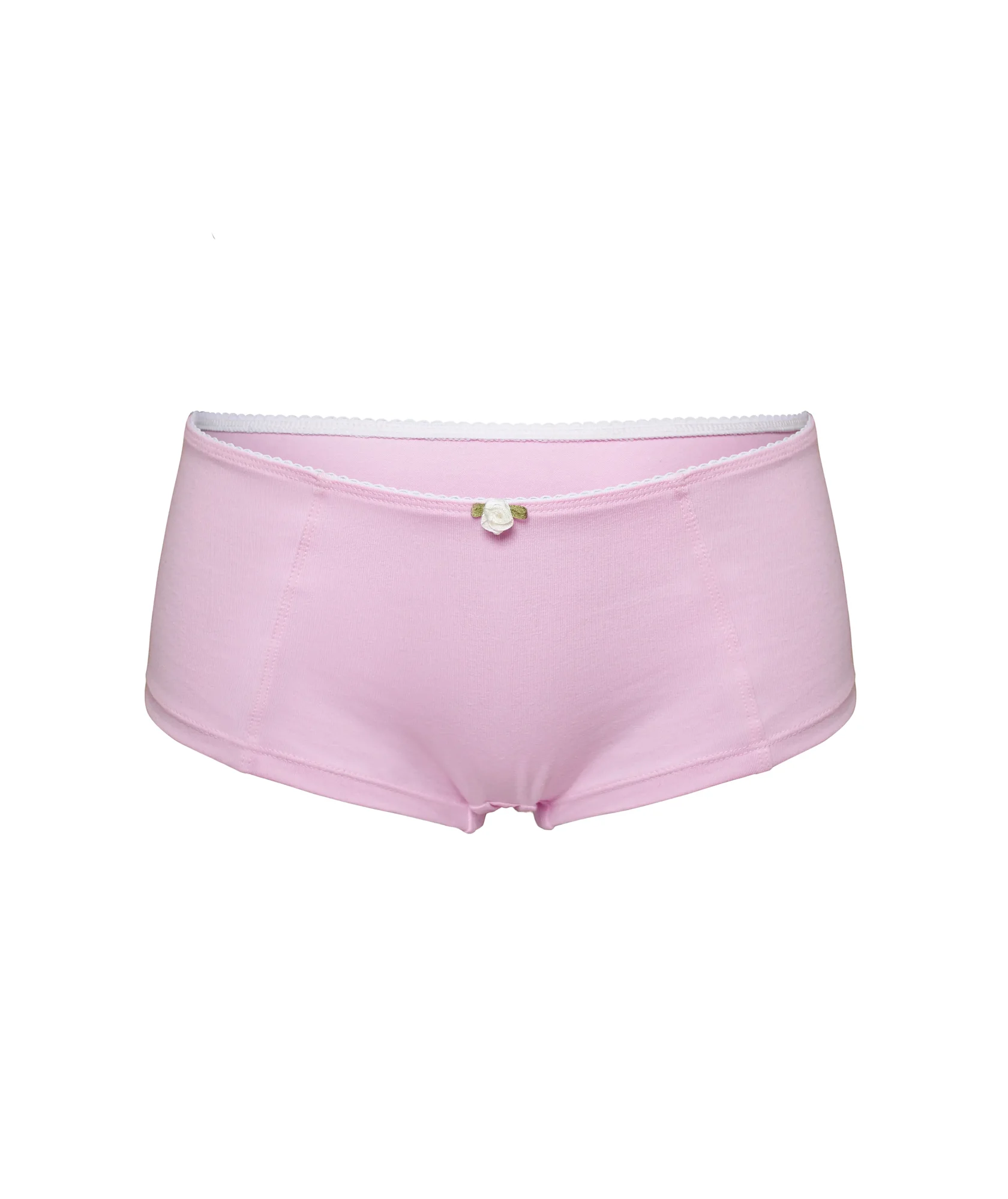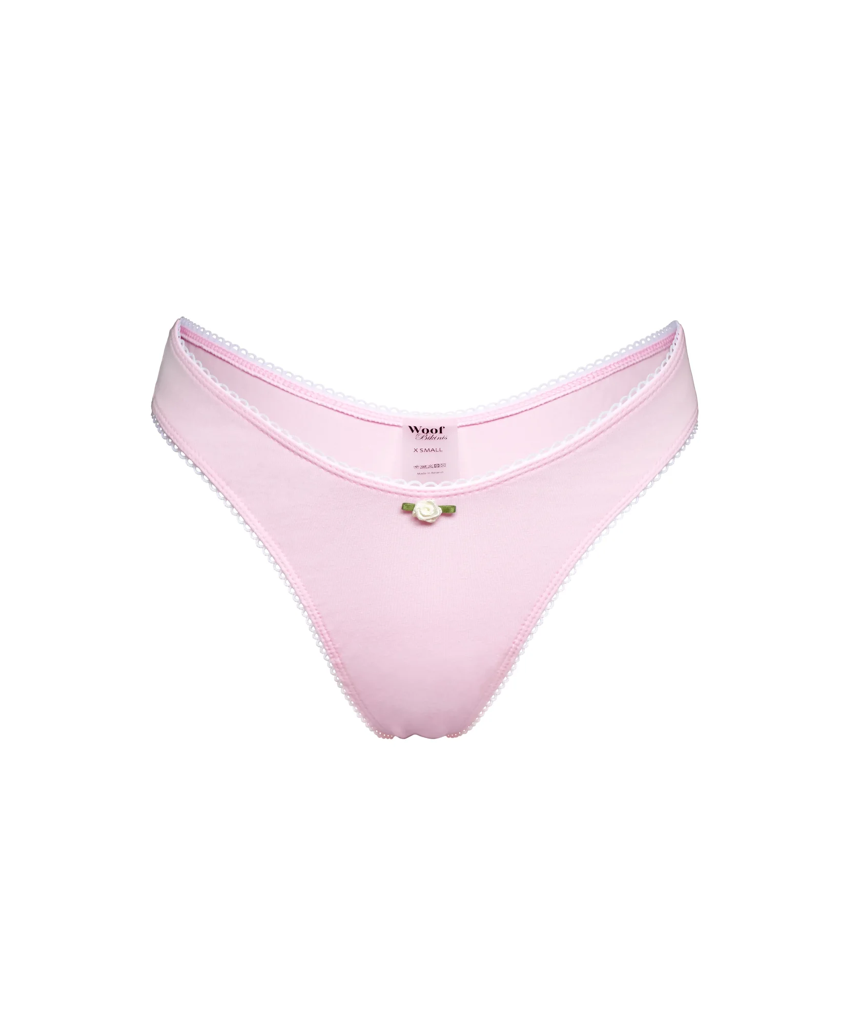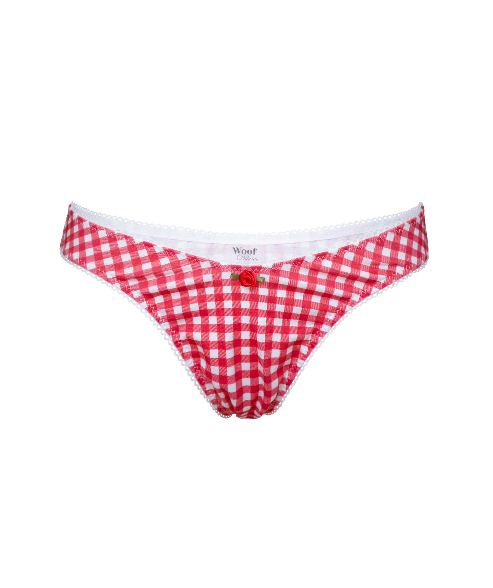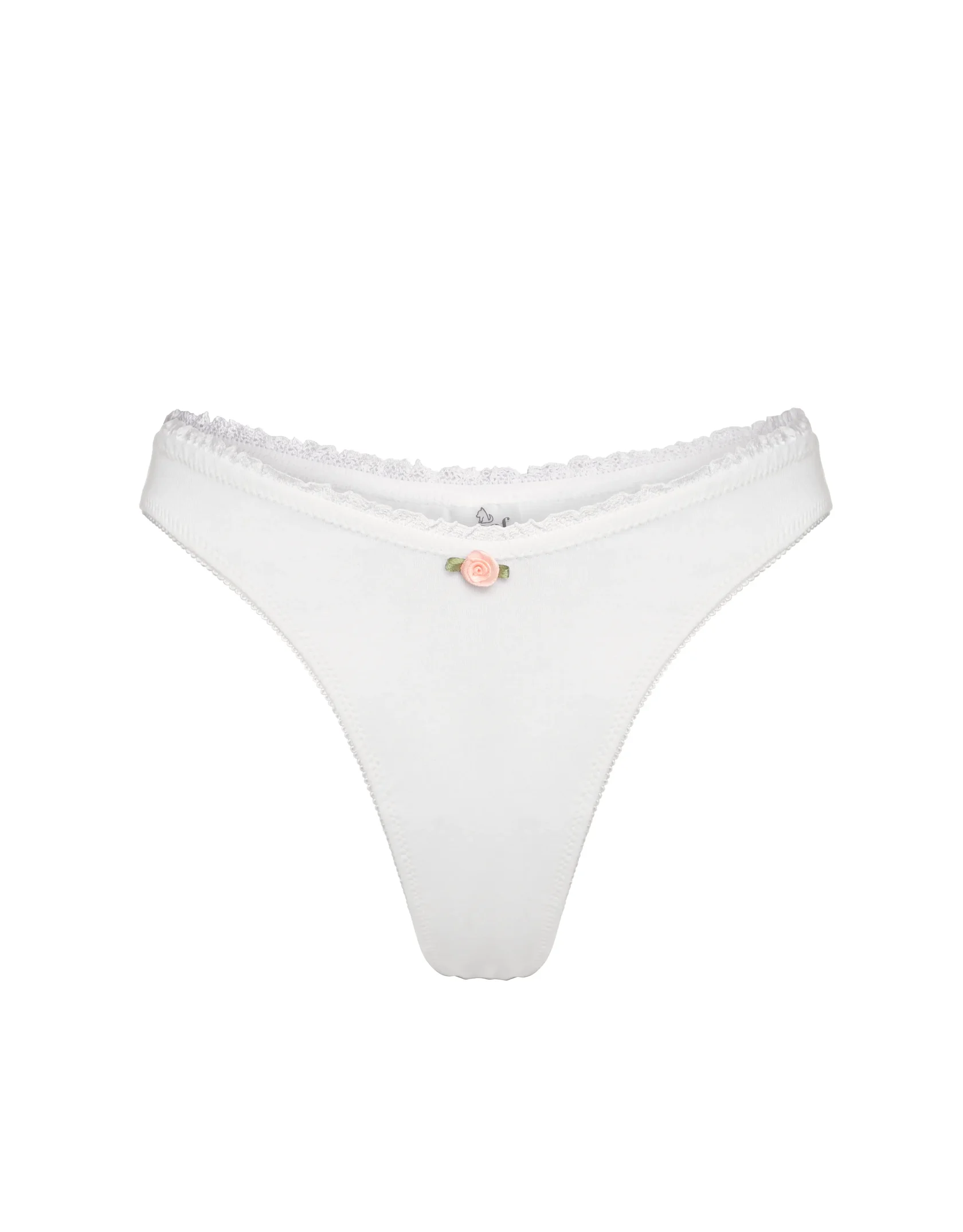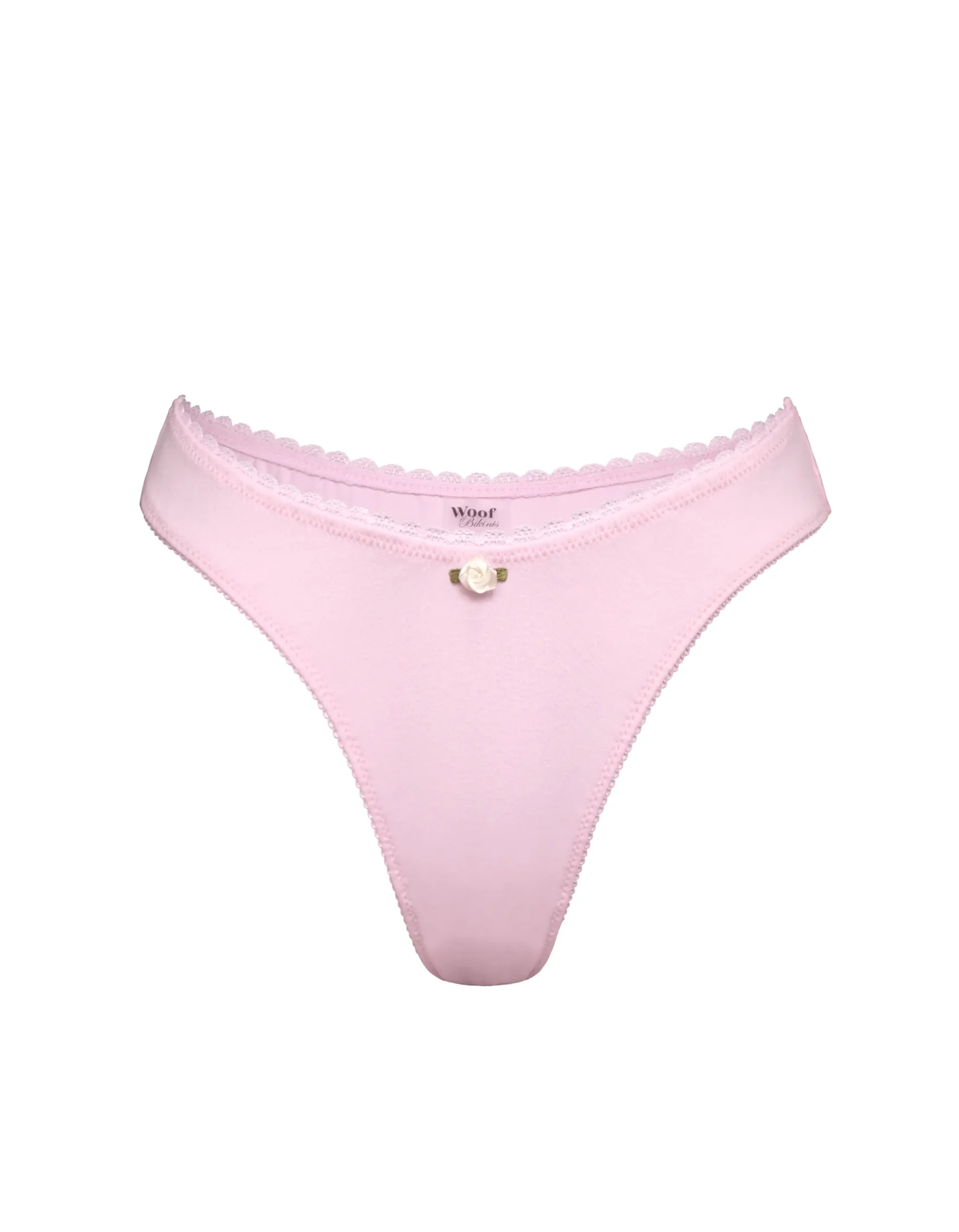 A classic silhouette, now as undies. The Bella thong is designed in a soft cotton fabric with a dainty rose. Snuggle up all season long in the Bella thong and matching Bella top and short.