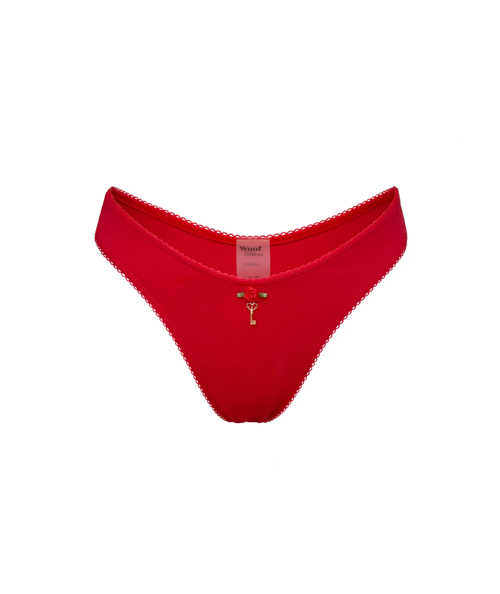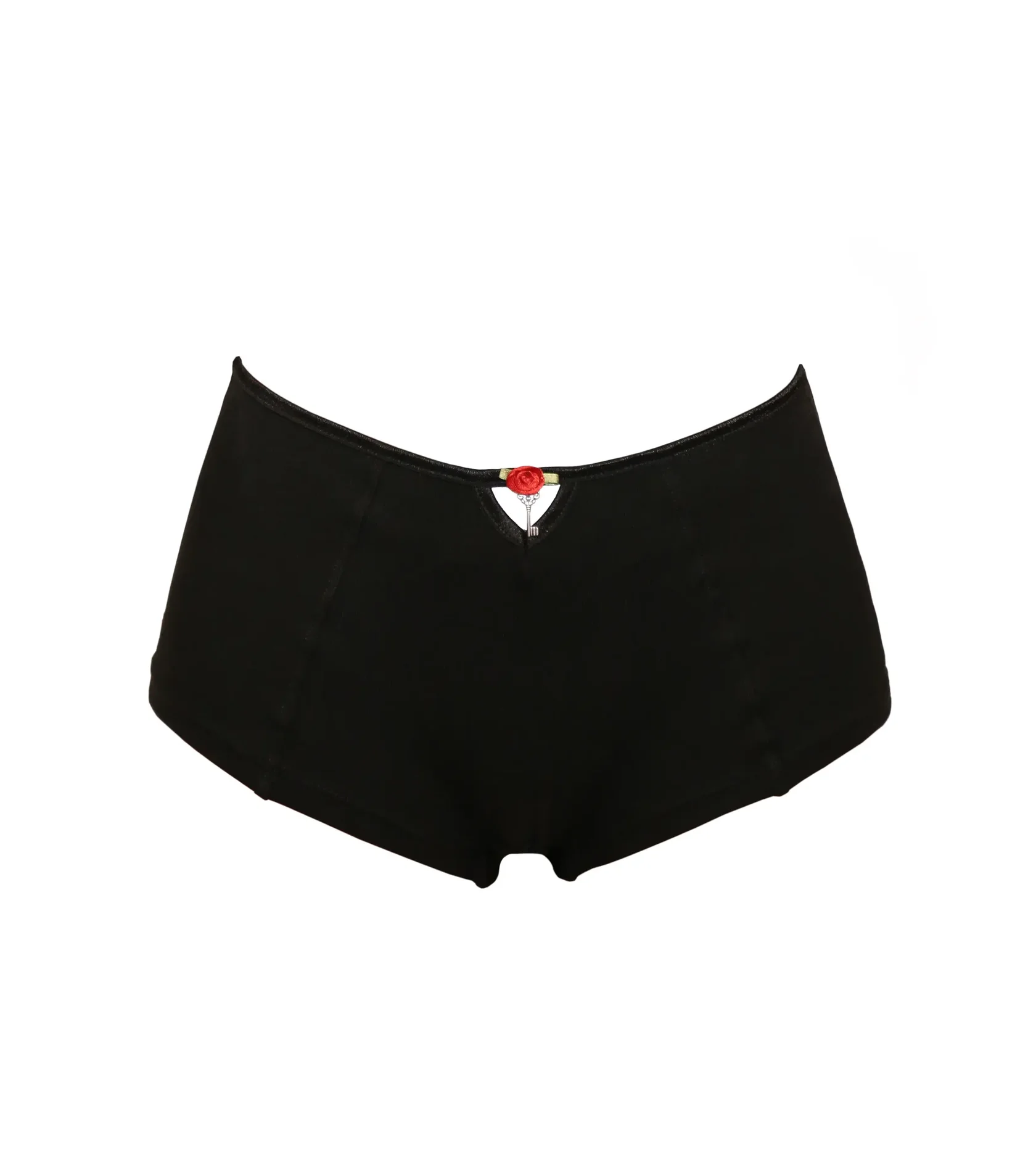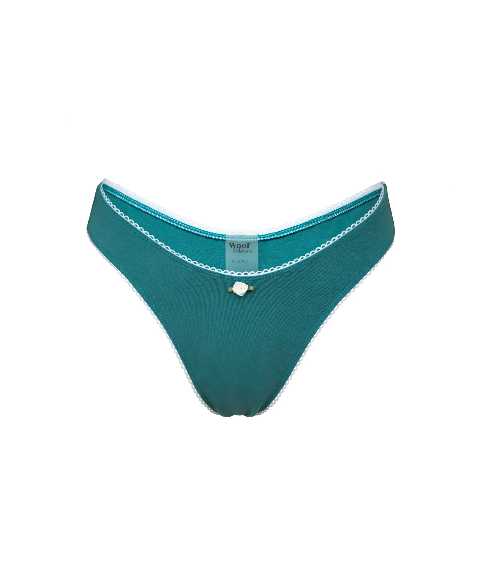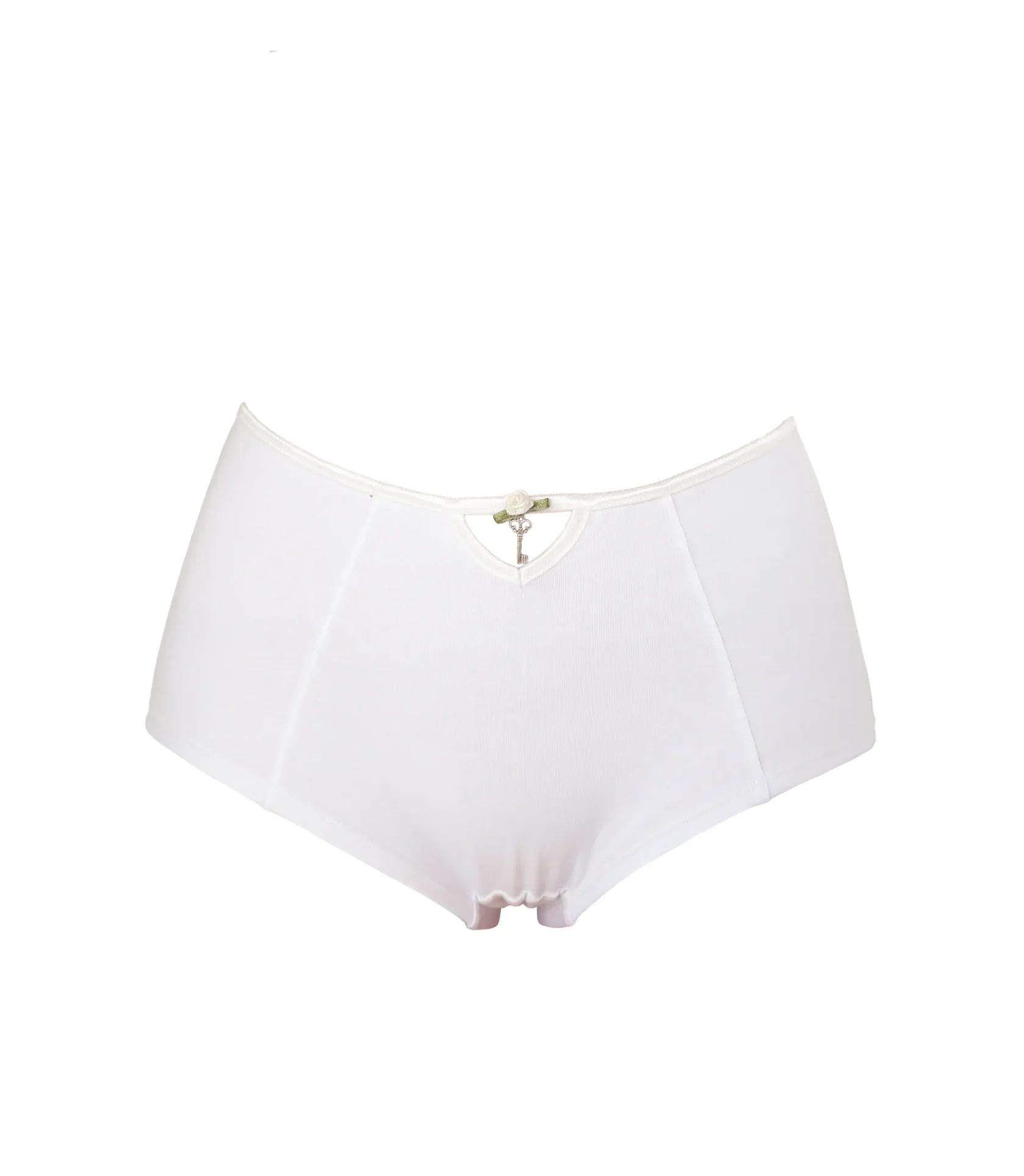 A classic silhouette, now as undies. The Bella thong is designed in a soft cotton fabric with a dainty rose. Snuggle up all season long in the Bella thong and matching Bella top and short.