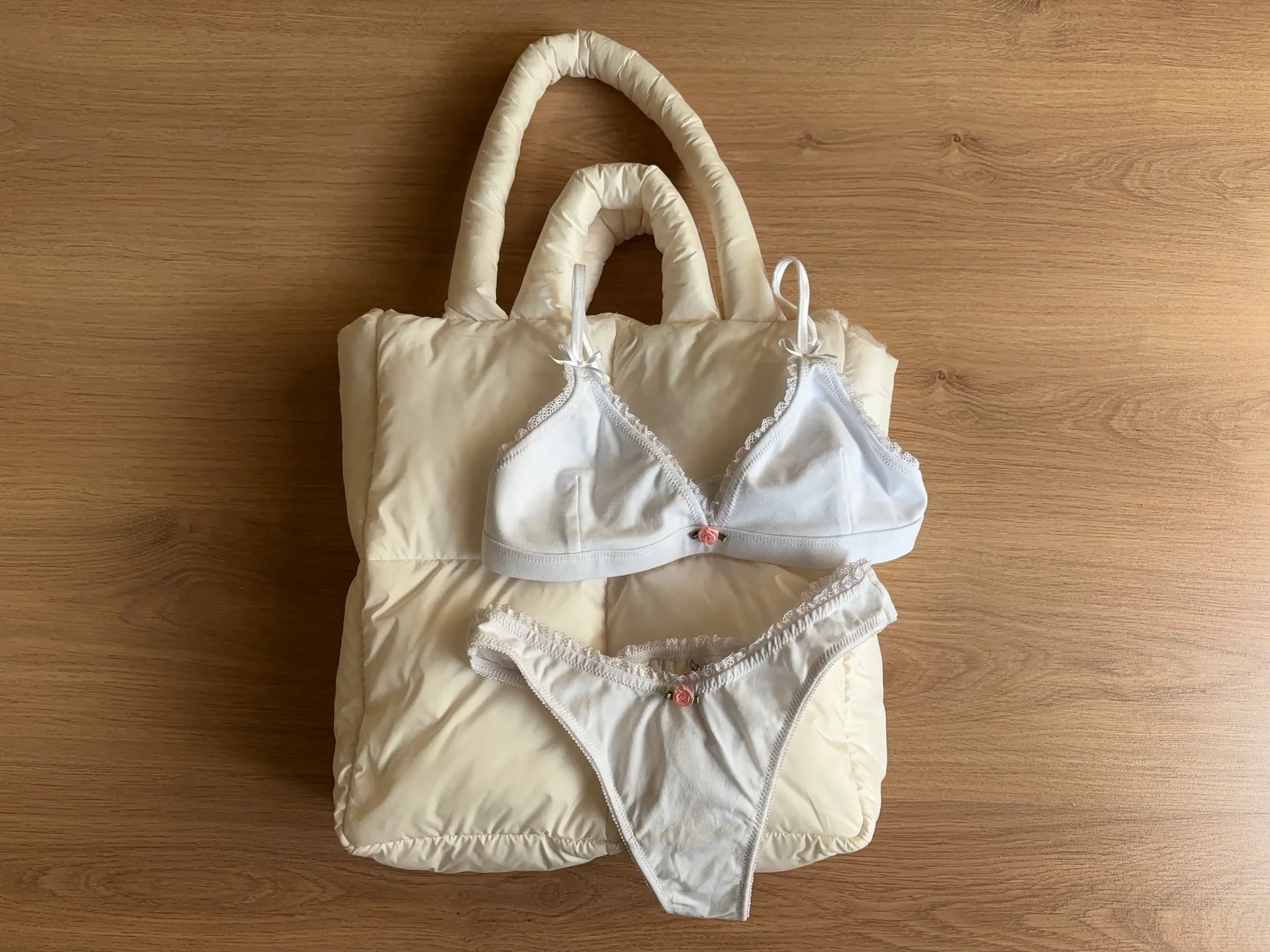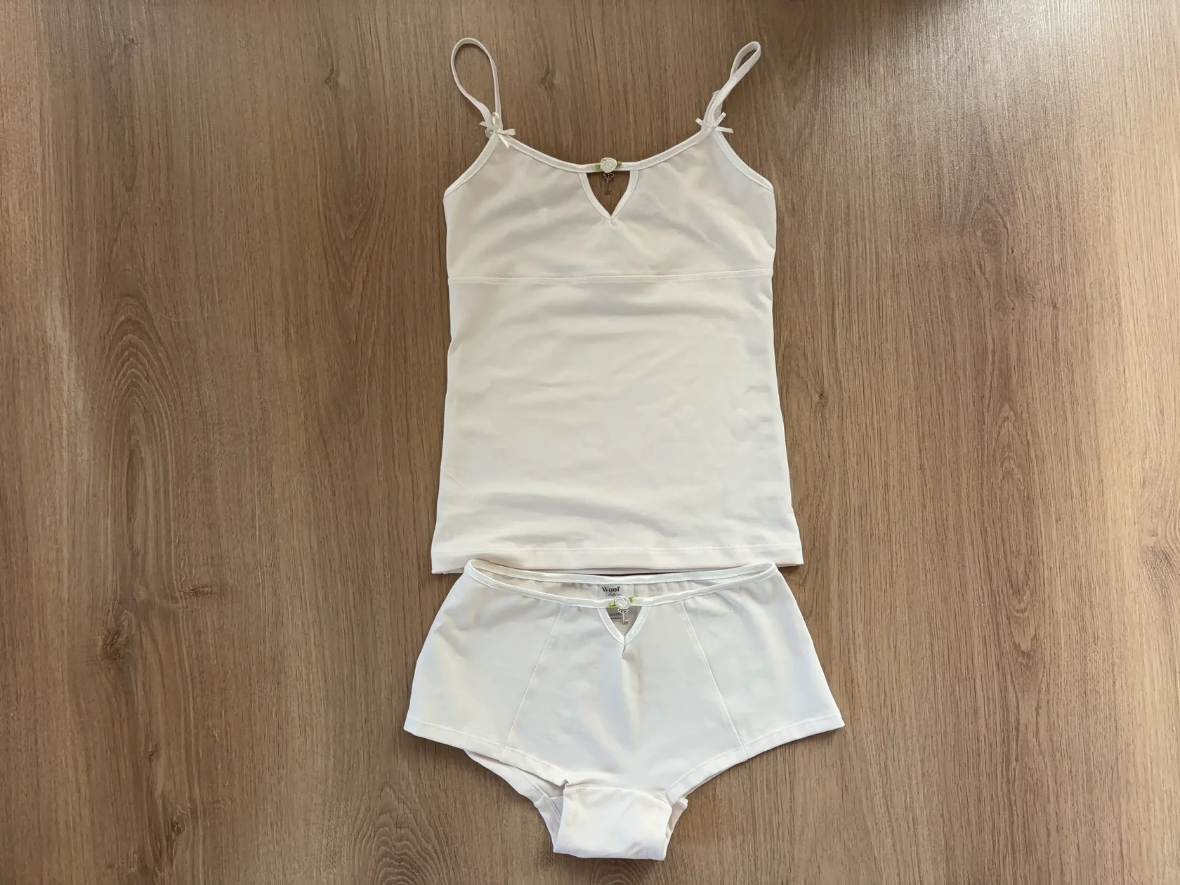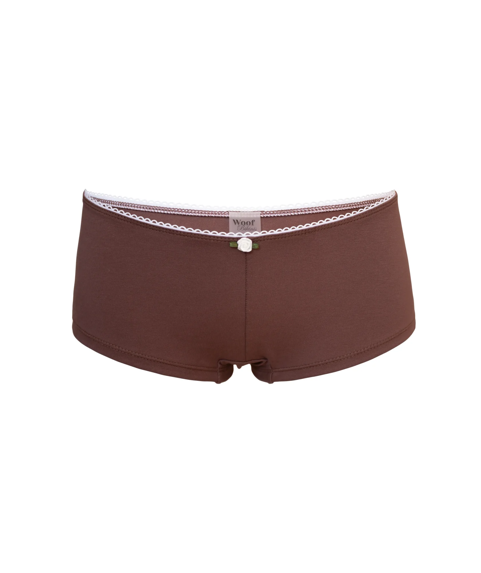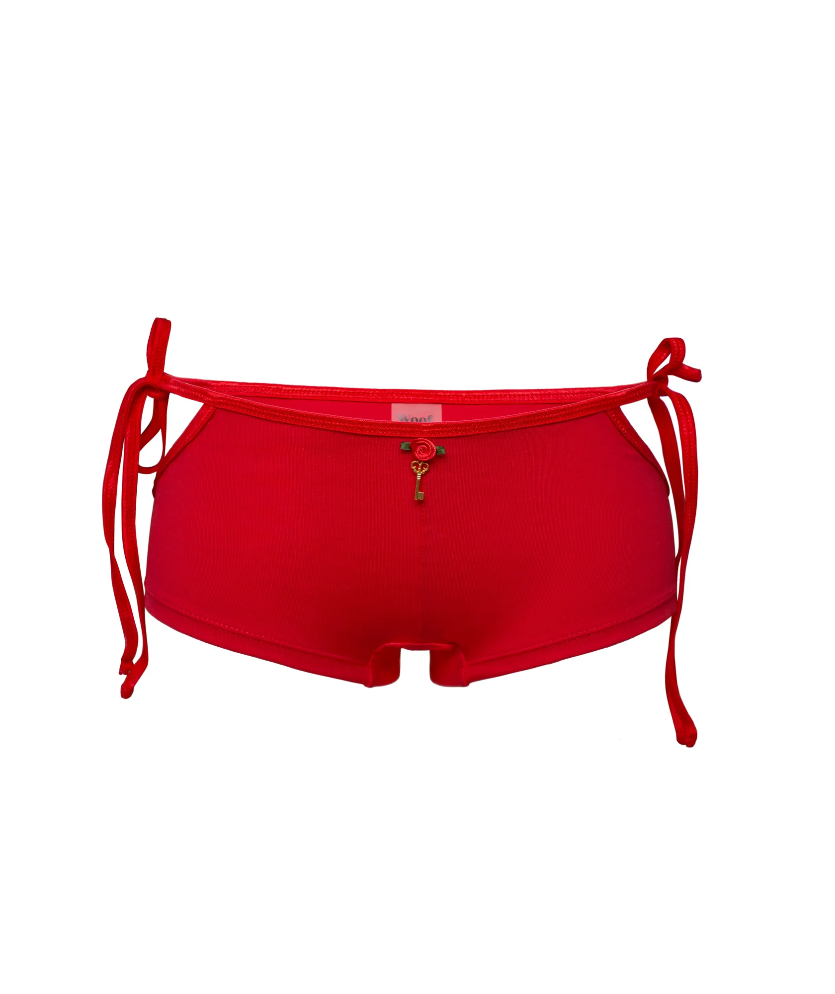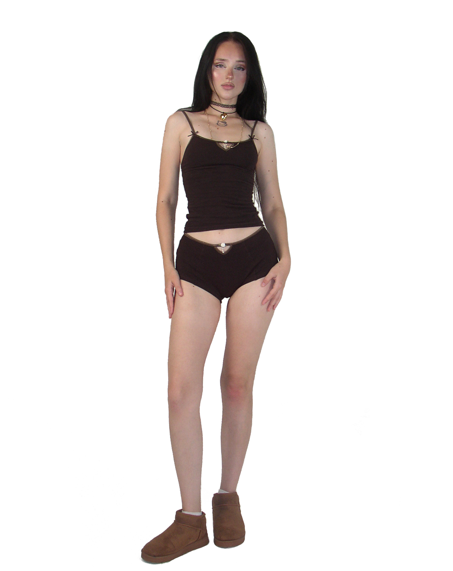 A classic silhouette, now as undies. The Bella thong is designed in a soft cotton fabric with a dainty rose. Snuggle up all season long in the Bella thong and matching Bella top and short.
