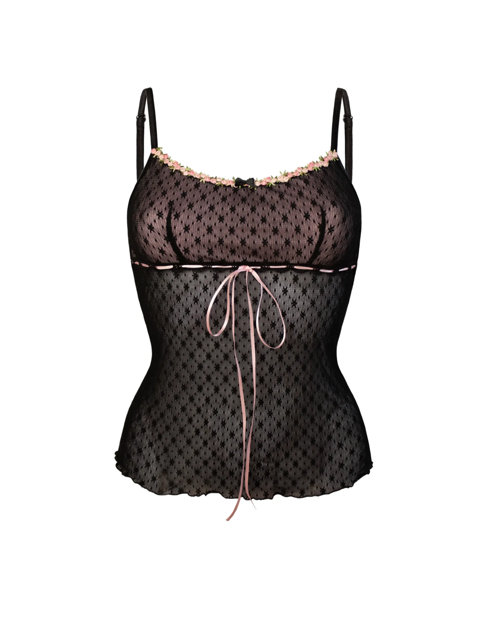Embrace the cozy season in the Amelia top. This flattering top is designed in our softest cotton fabric with adjustable shoulder straps and a black and white print. Complete the look with the matching Amelia mini short in black.