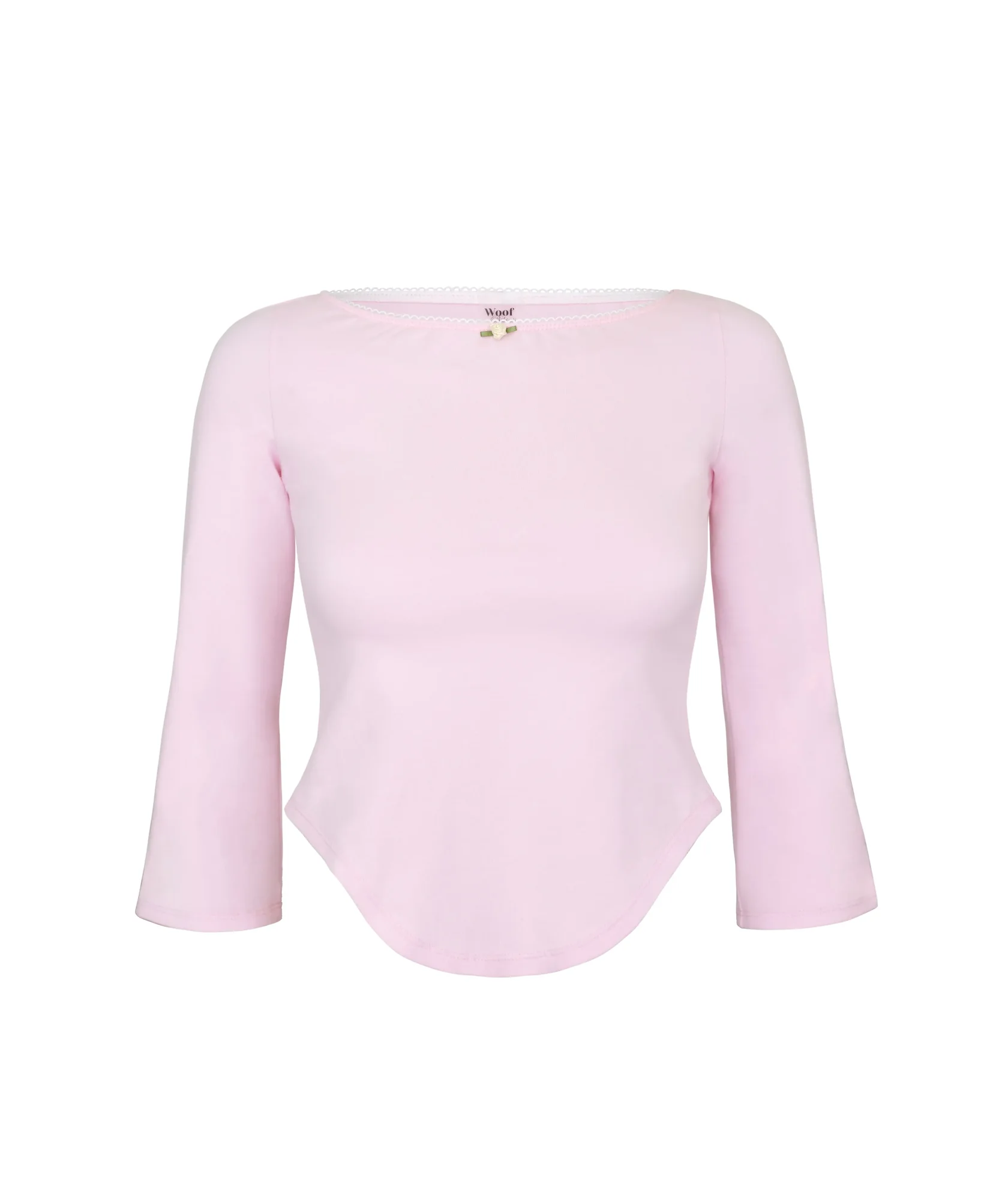 A new top. The Jasmine top is designed in lace fabric with a bow detail and shine binding. For lounging all day, pair Jasmine with a cozy hoodie or cotton shirt.