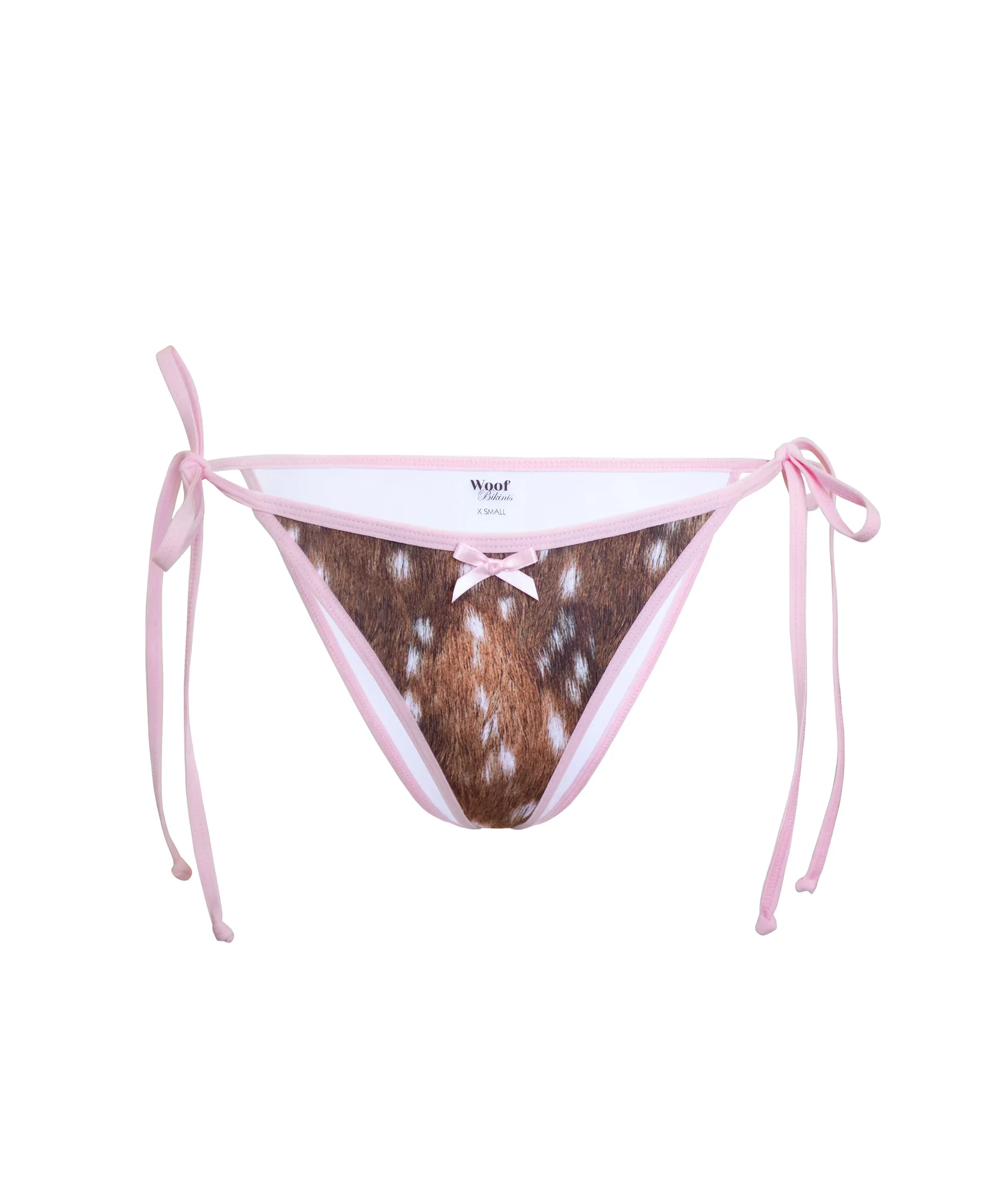 Designed with a low-rise fit and skimpy coverage, the Bambi bikini bottom is a go-to beachside silhouette. Bambi features adjustable tie sides and a new print. Pair this bikini bottom with the matching Bambi bikini top as your go-to travel set.